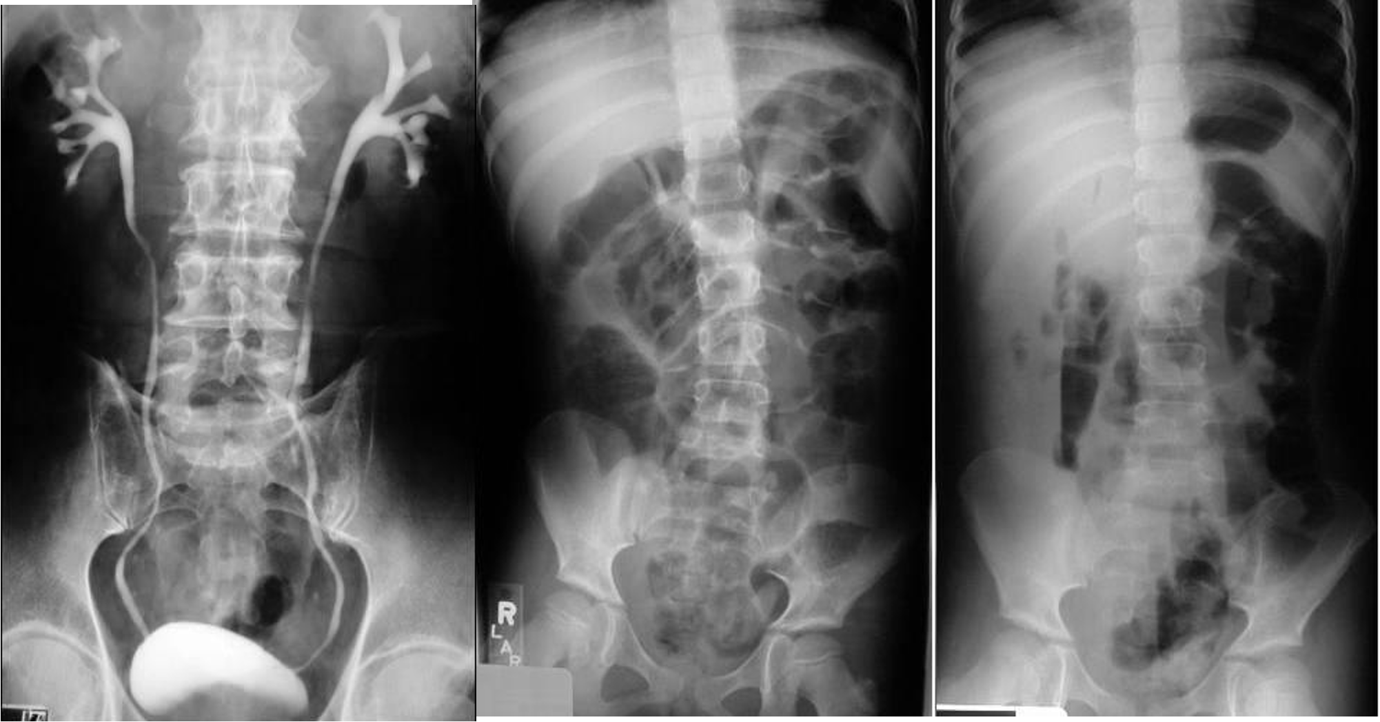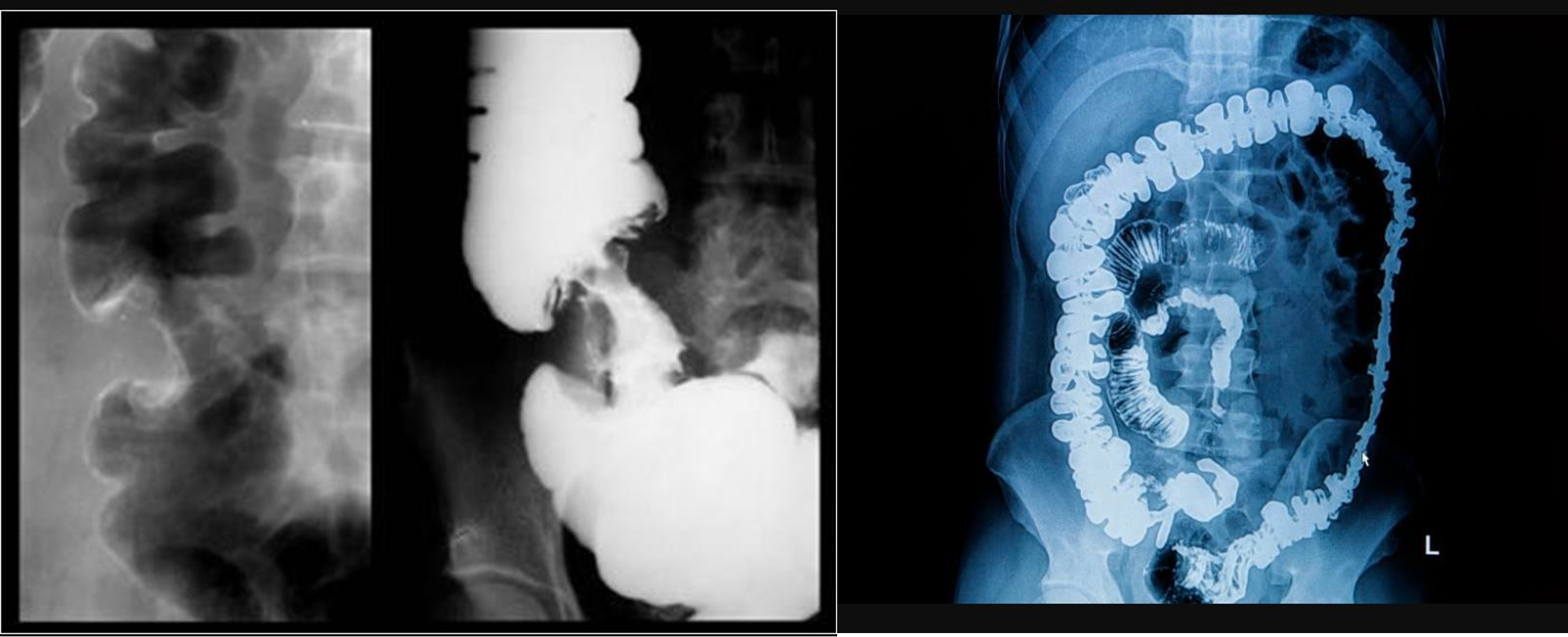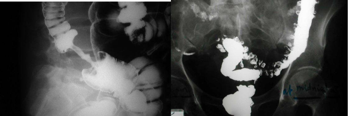 Modality: Gastrography swallow / Barium Enema Findings: apple core / out pouching lesions Differentials: colon cancer / diverticulum