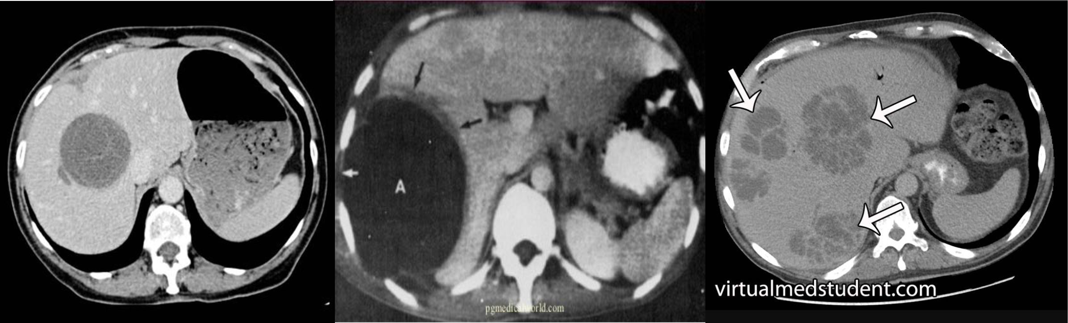 multiple lesion in liver due (Diff; cancer, multiple abcess pyogenic most likely)