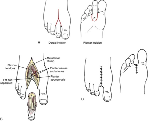 - Types ? Ray amputation, which involves the excision of the toe and part of the metatarsal