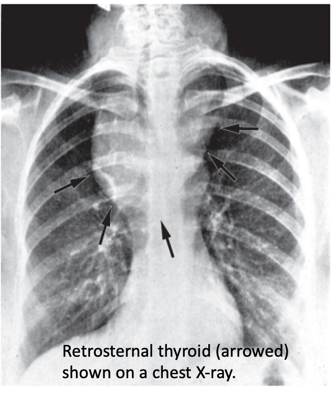 Pemberton’s sign is used to evaluate venous obstruction in patients with goiters. The sign is positive when bilateral arm elevation causes facial plethora. It has been attributed to a “cork effect” resulting from the thyroid obstructing the thoracic inlet, thereby increasing pressure on the venous system.