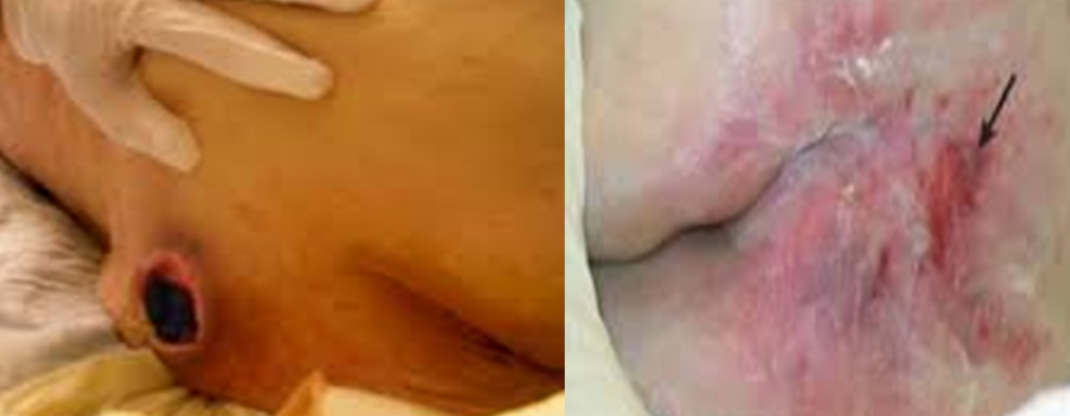 - two ulcer over head of metatarsal, callus thick skin, punched out, floor related to the tissue (neuropathy), Base … ,