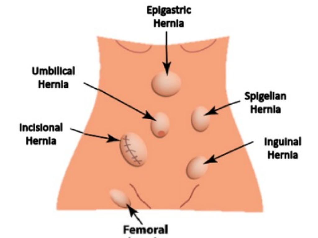 - Everted & swelling of Umbilicus, distended abdomen (put your hand for palpable hernia) (repair surgery) (para-hernia commonly in adults) ++ ascites/pregnancy
