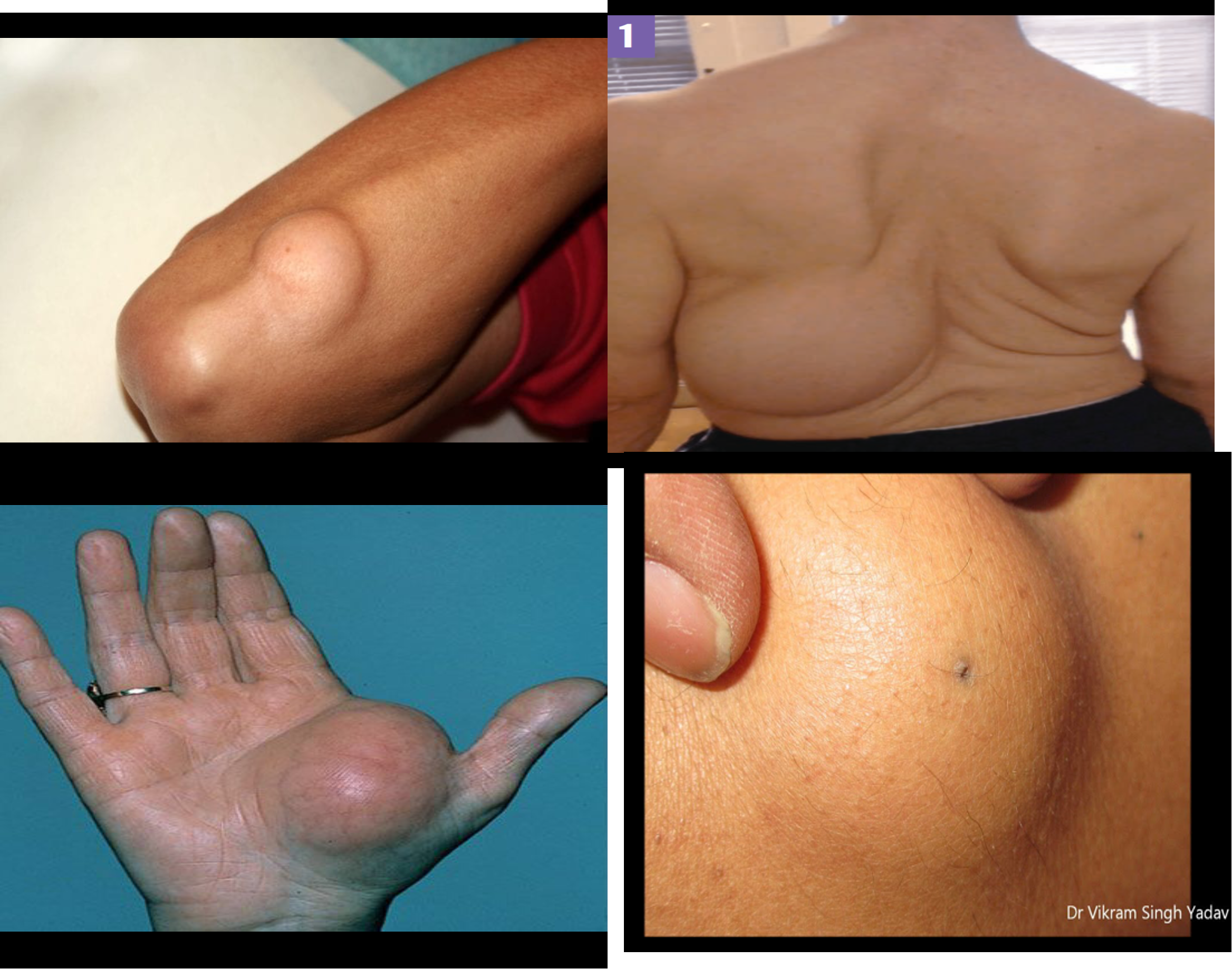 Lump RT Forearm around 4cm, regular, spherical, thrill, smooth, non tender, pulsatile, non compressible, diff… lipoma, subcutanous cyst, neurofibroma/