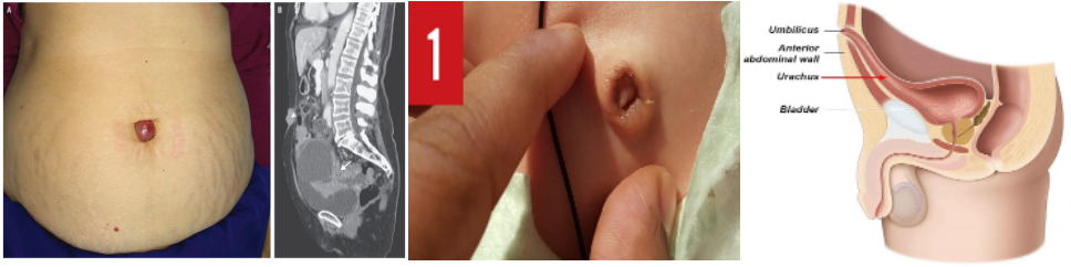 The urachus is a fibrous remnant of the allantois, a canal that drains the urinary bladder of the fetus that joins and runs within the umbilical cord.