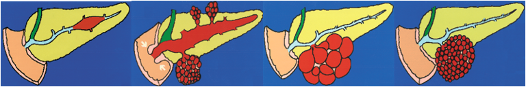 - lesions of the main-duct: 57–92%