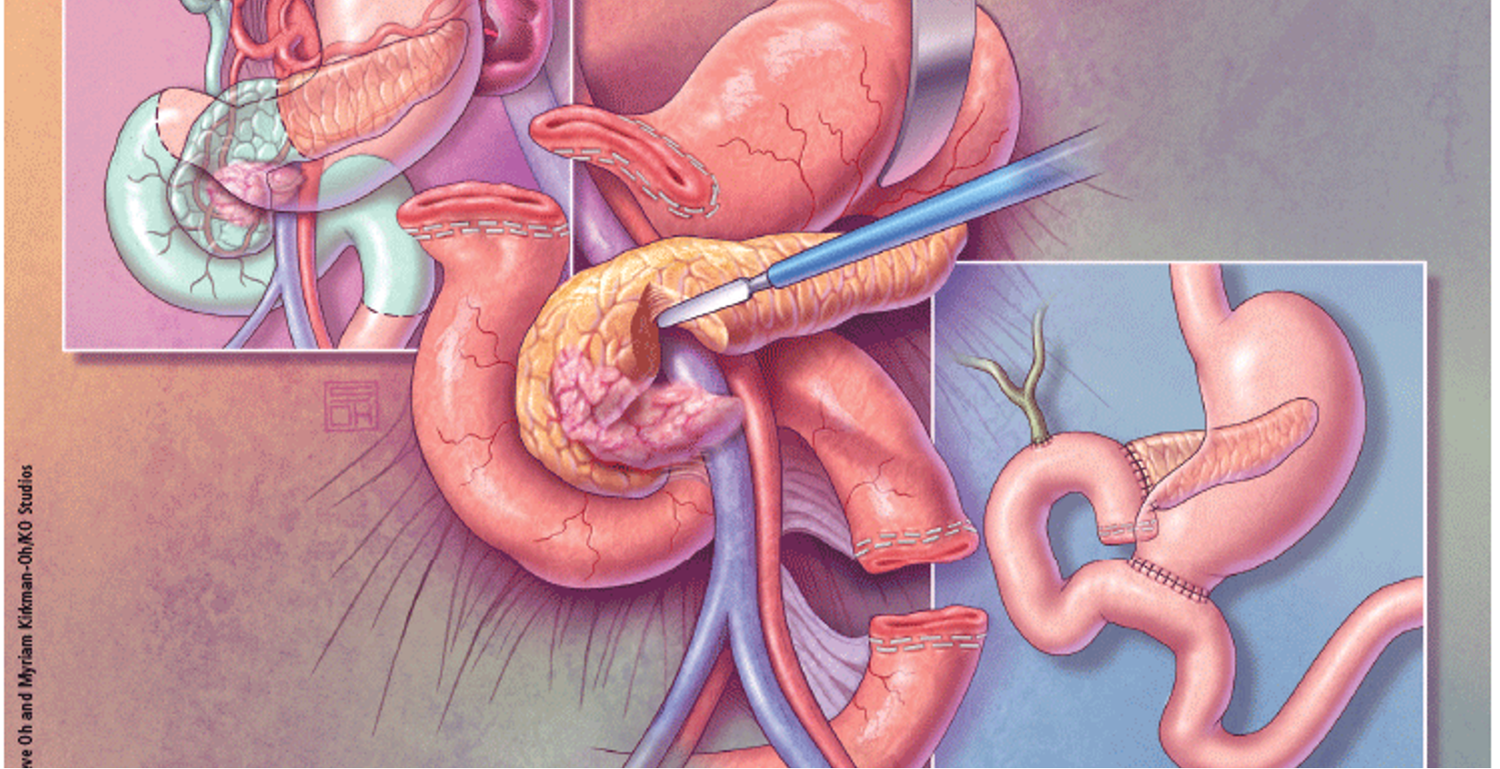 Tumors involving the head of the pancreas are treated by pancreaticoduodenectomy (Whipple’s procedure), which entails block resection of the head of the pancreas, the distal half of the stomach, the duodenum, gallbladder, and common bile duct.