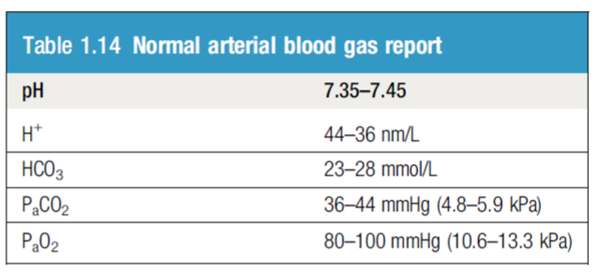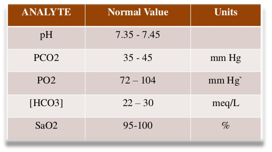 Blood CO2: The normal range for arterial blood is 36–44 mm Hg.