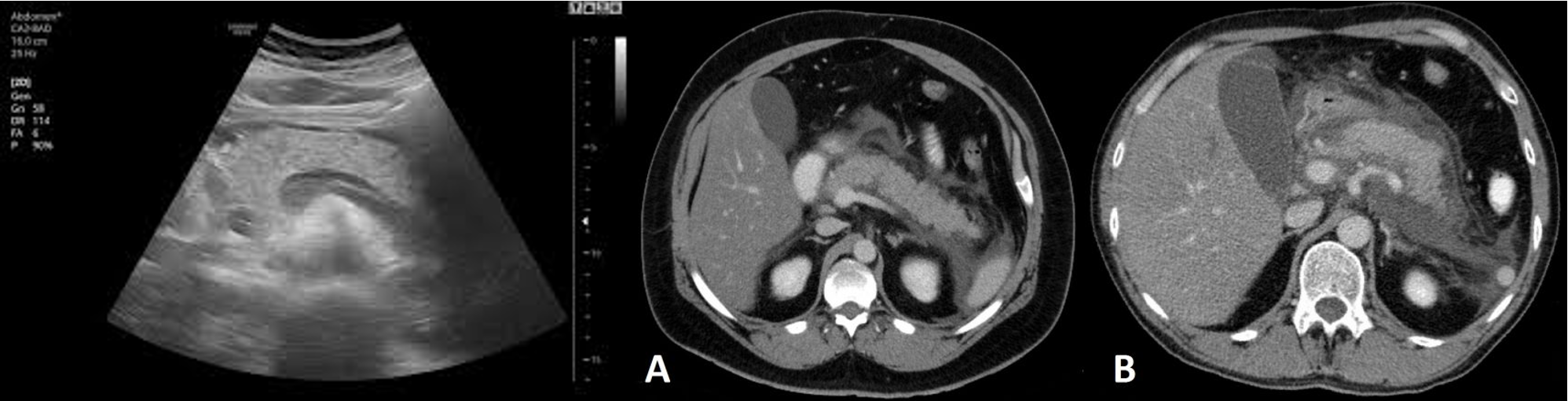 • Abdominal CT: diagnosis, complications of acute pancreatitis, evidence of necrotizing pancreatitis.