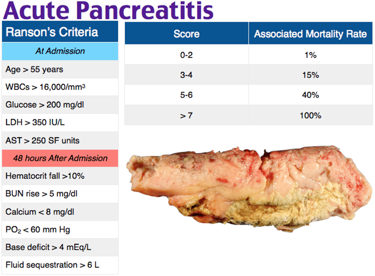 The criteria for point assignment is that a certain breakpoint be met at any time during that 48-hour period, so that in some situations it can be calculated shortly after admission. It is applicable to non-gallstone pancreatitis.