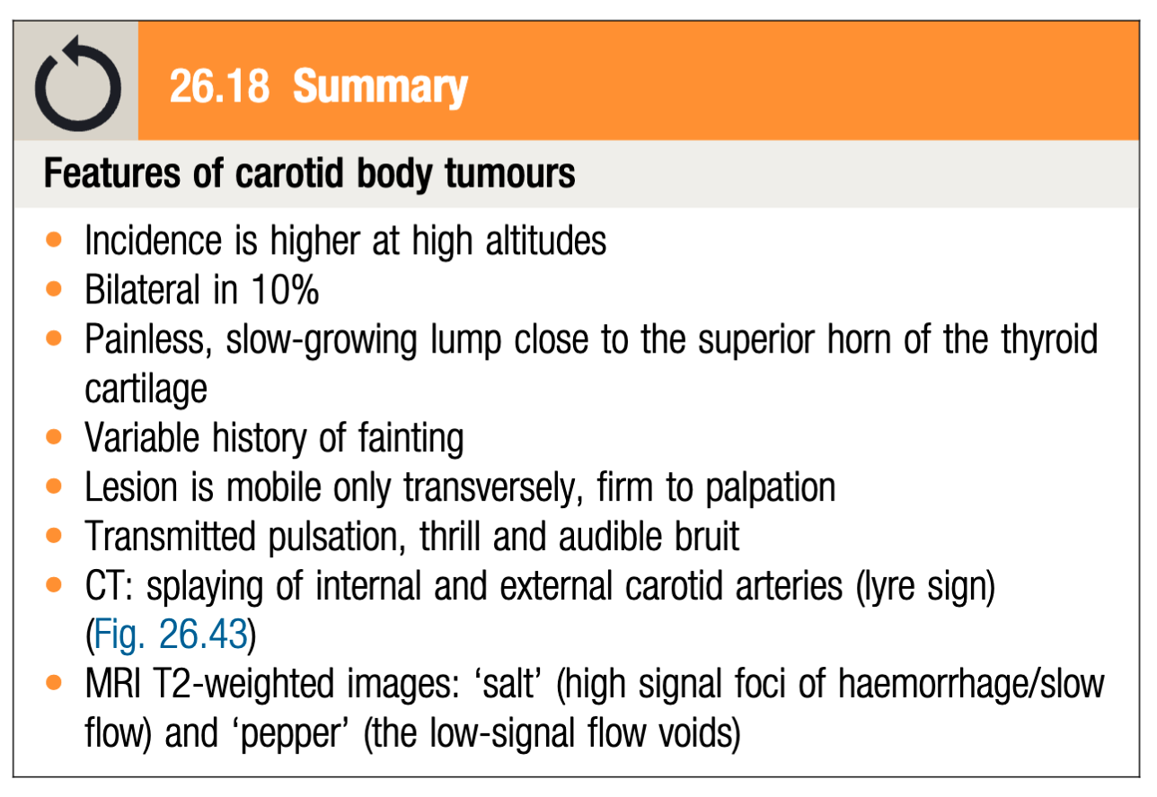 • Slow growing painless swelling at the bifurcation of common carotid artery Z
