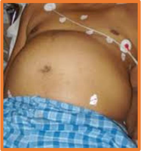 - Grade 3: Large ascites, causing huge abdominal distension ( Grade 2 & 3 can be detected by physical exam)