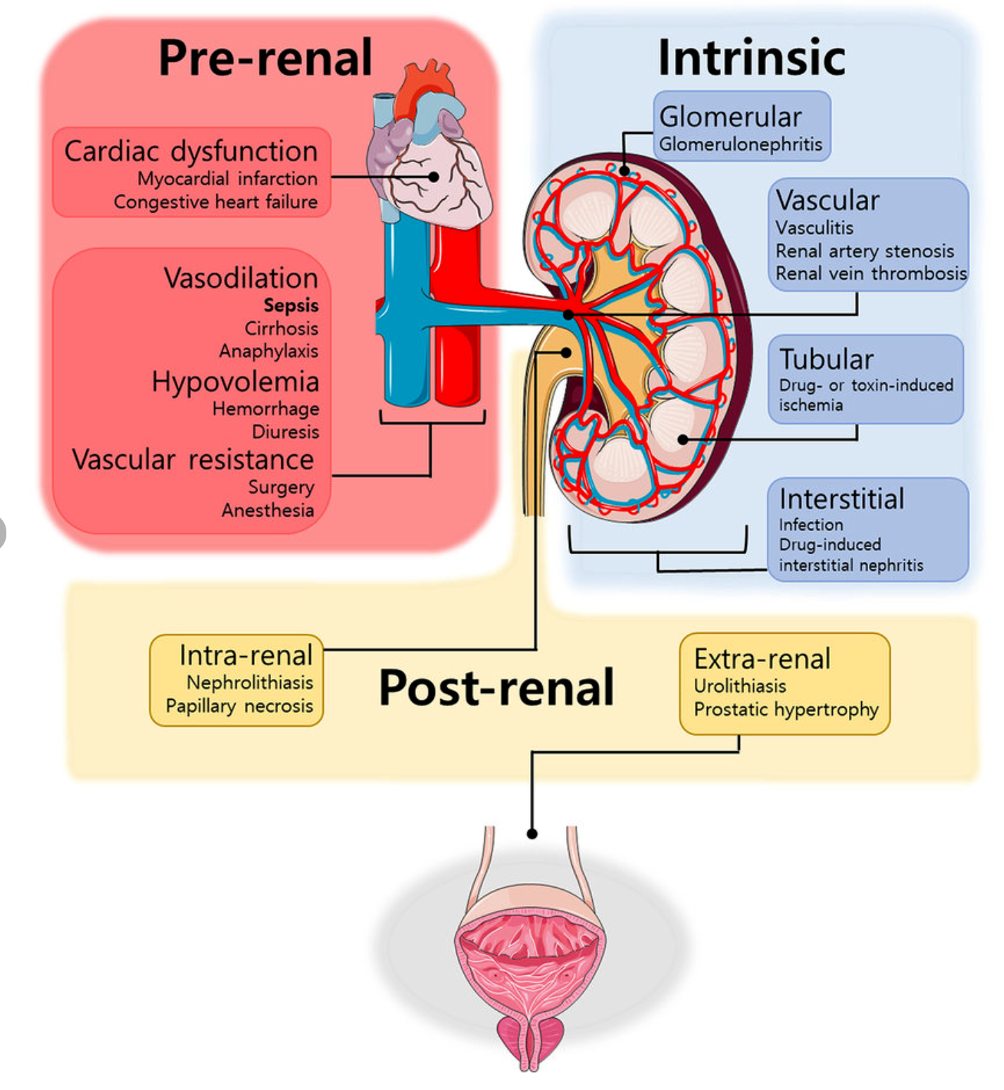 | Chronic (CRF) | Persistent renal failure for more than 3 months. It is progressive. CRF finally leads to end-stage renal disease (ESRD) |