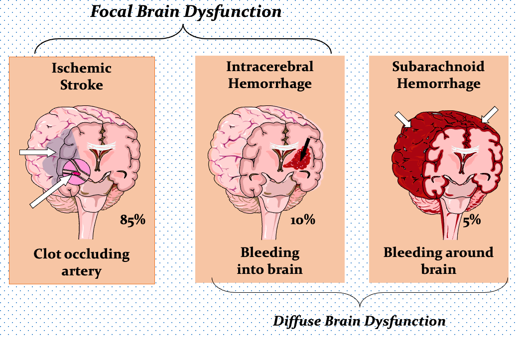 | Ischemic Stroke (85%) | Intracerebral Hemorrhage (10%) | Subarachnoid Hemorrhage (5%) |