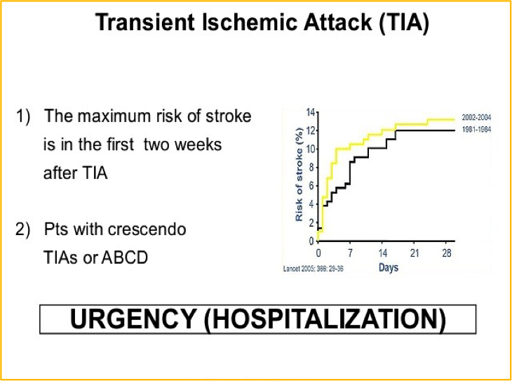 - Capsular warning syndrome: repeated weakness face, arm, leg