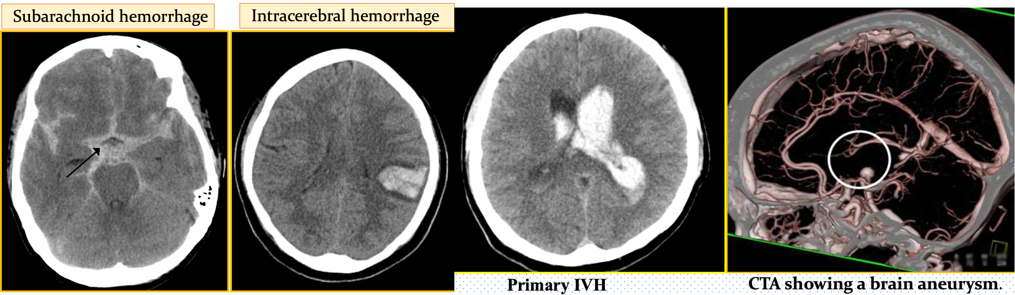 | Clot occluding artery | Bleeding into brain | Bleeding around brain |