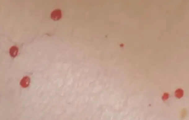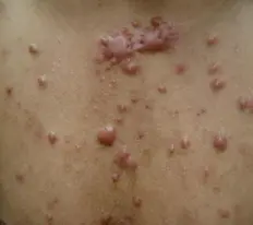Description: Typically presents as multiple non-pruritic, painless lesions (e.g., appearing in the chest of a 45-year-old man). Diagnosis: