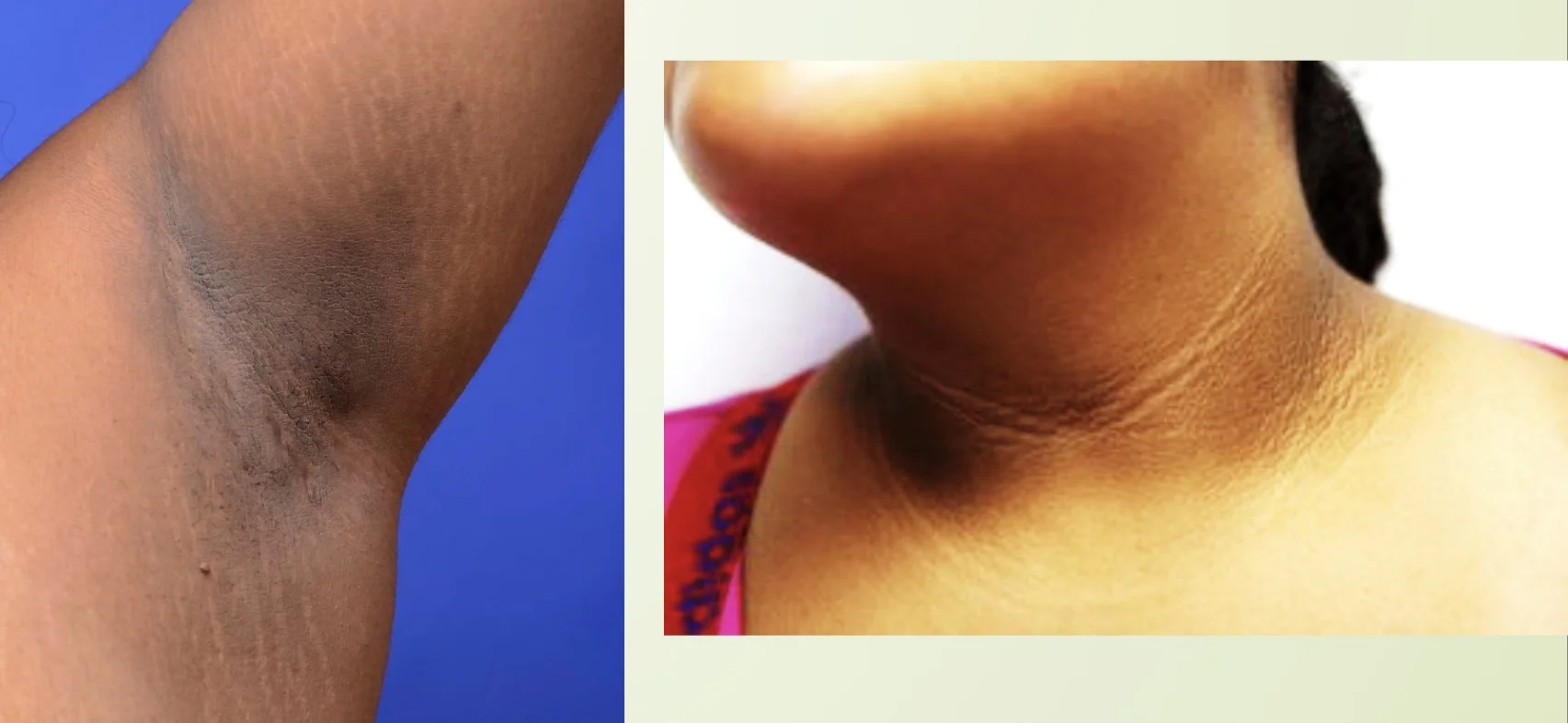 Scenario: This obese diabetic patient developed discoloration on his nape. Scenario: A 54 Y/O female presents with asymptomatic black discoloration in axillae and neck. Her BMI is 40. What is the name of this condition?