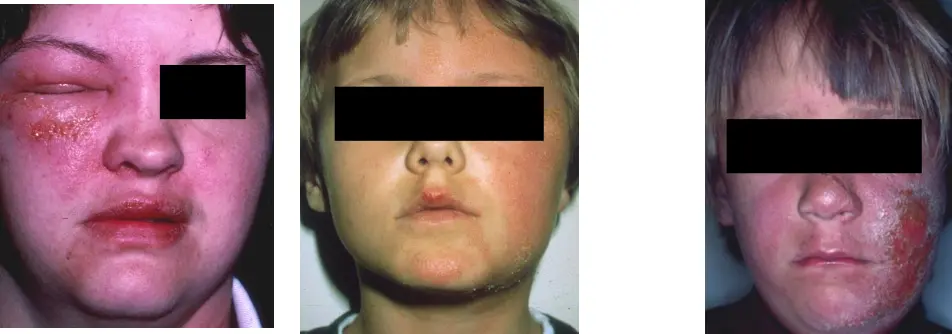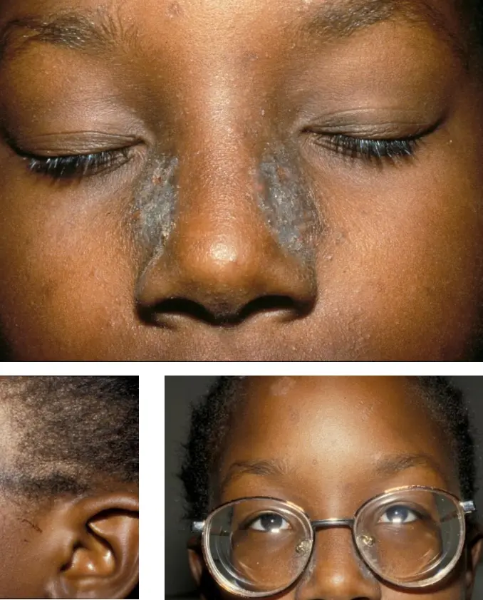 - This 11-year-old girl presents with 3 months of an itchy rash on the sides of her nose and ears.