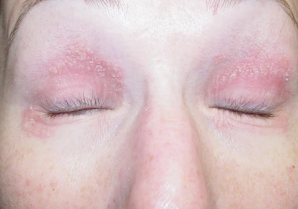 - Eyelids Allergic Contact Dermatitis: Very itchy, bilateral erythematous scaly plaques in upper eyelids.