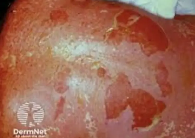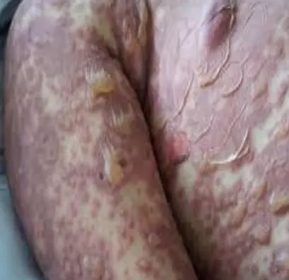 - Describe the skin condition? Generalized erythema, detachment of the skin