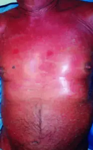 Referring to the above scenario what is the emergency condition developed? Erythroderma