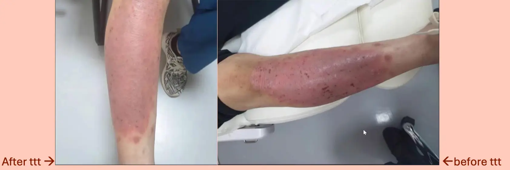 - History context for Infective Eczema: Filipina presents with severe itching, clobetasol ointment (topical steroid) showed no improvement. Given Fucidin antibiotic + corticosteroids and showed dramatic improvement.