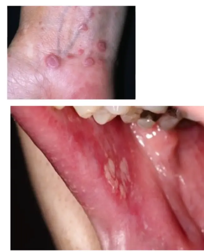 - Ulcerative form in the mouth/oral cavity may lead to squamous cell carcinoma (SCC).