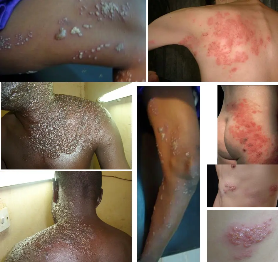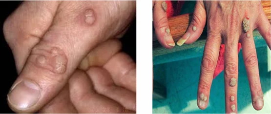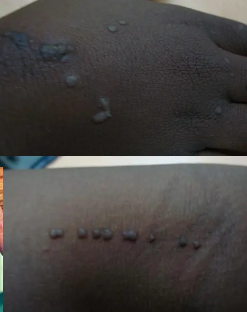 - Started as single, small papules then increased in numbers and sizes.
