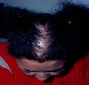 - Moderate comedonal and inflammatory acne of cheeks and jaw line. Also with scattered terminal hairs on the upper lip and lower chin.