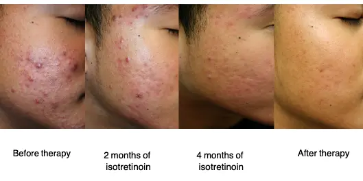 - HPI: Ahmed is an 18-year-old man who presents with four years of bad acne on his face and chest. He has been taking oral minocycline 100 mg BID, topical tretinoin, and a combination of benzoyl peroxide and clindamycin for 18 months without improvement.