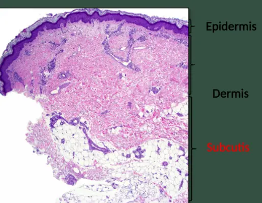 - Below the dermis is also called subcutis, panniculus, or hypodermis.