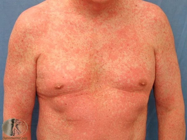 - Usually occurs 2-6 weeks after initiation of the medication, which is later than most drug eruptions.