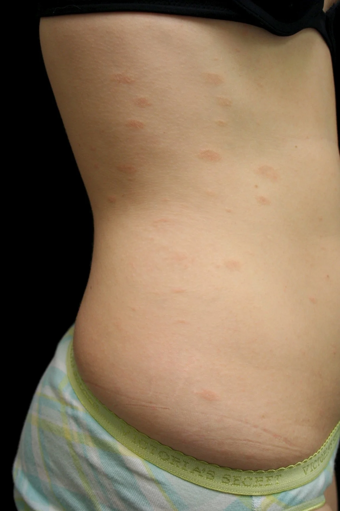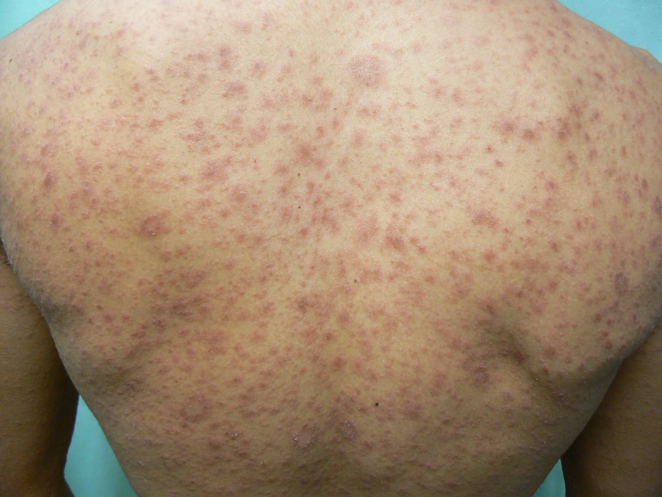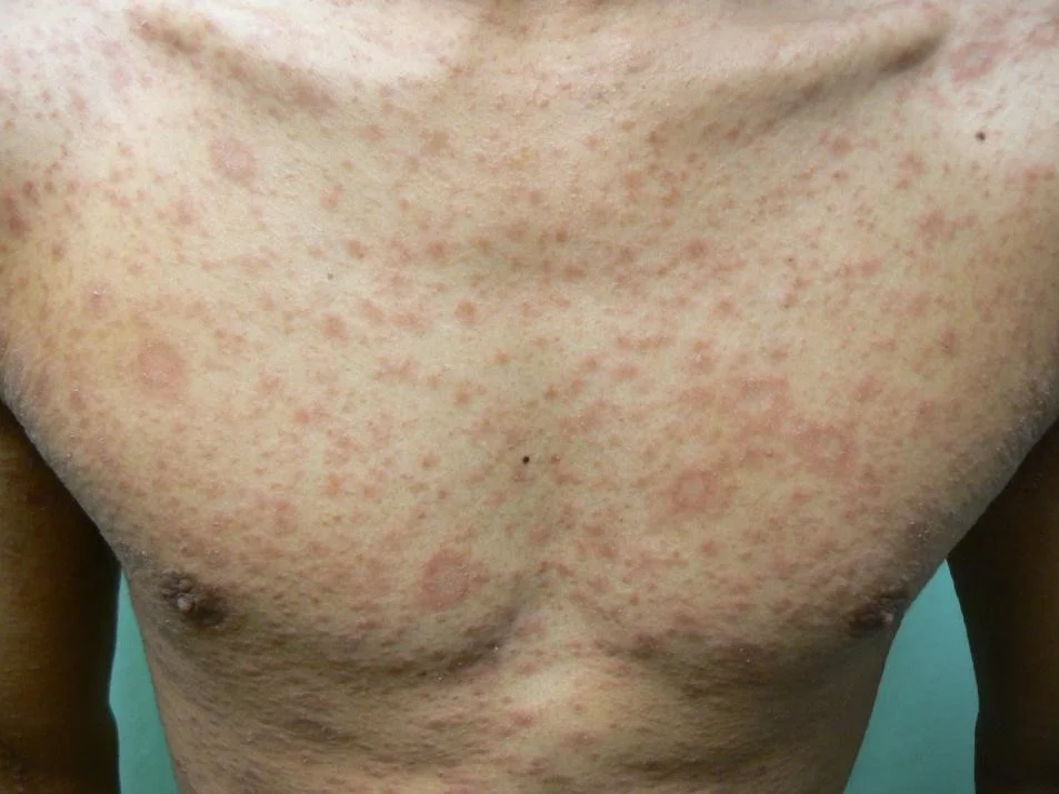 Ali returns in 3 days for a rash on his chest, abdomen, and back