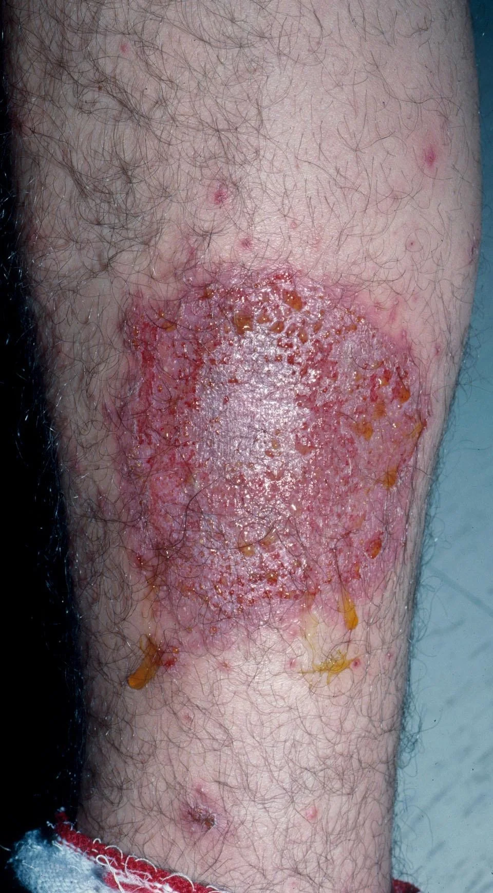 - May exhibit weeping, cracking, vesicles, or crusts