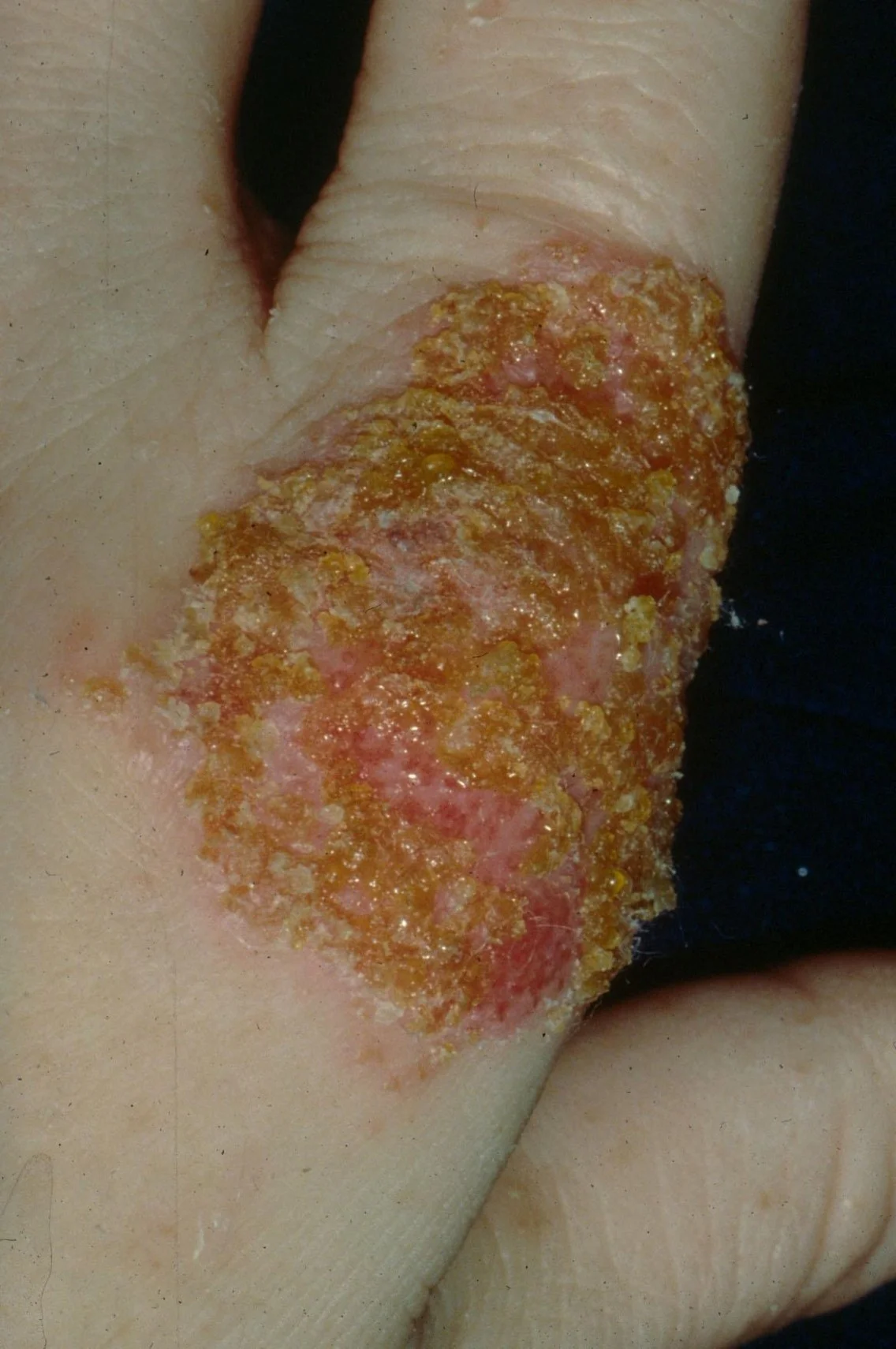 - His scalp, umbilicus, nails, palms, and soles are unaffected.