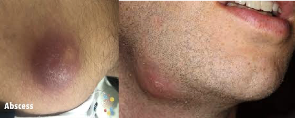 - Abscess is a Infectious pocket of pus; commonly Staph. Aureus (dead cells, exudate, bacteria) surrounded by granulation tissue; any organism can cause it (Staph. Aureus is common)