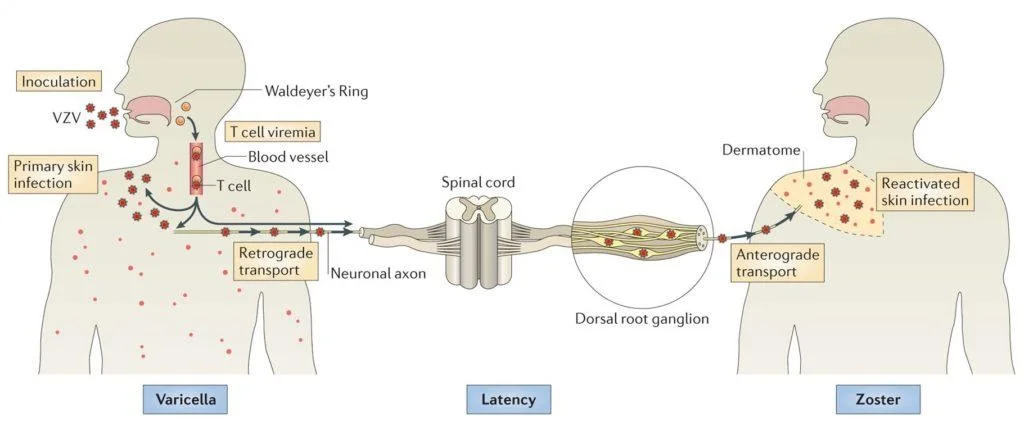 - Varicella-zoster virus is found in the posterior root ganglia of all people who experience a chickenpox infection in the past