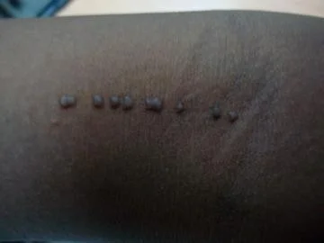 - Small satellite warts may surround the original lesion (because the virus is usually present in a one-cm radius surrounding the wart)