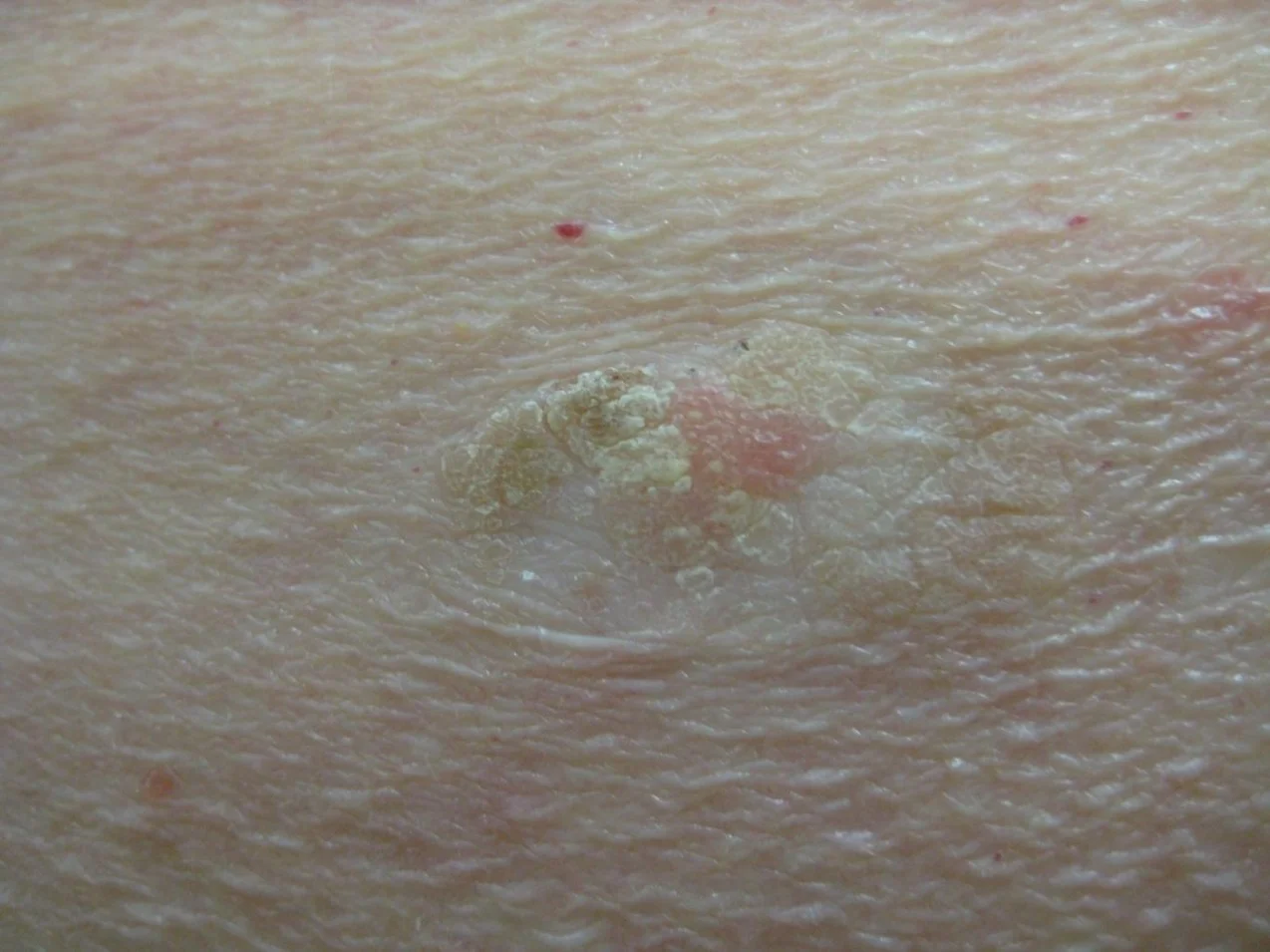 The lesion sometimes itches and it bled once after getting caught on his shirt