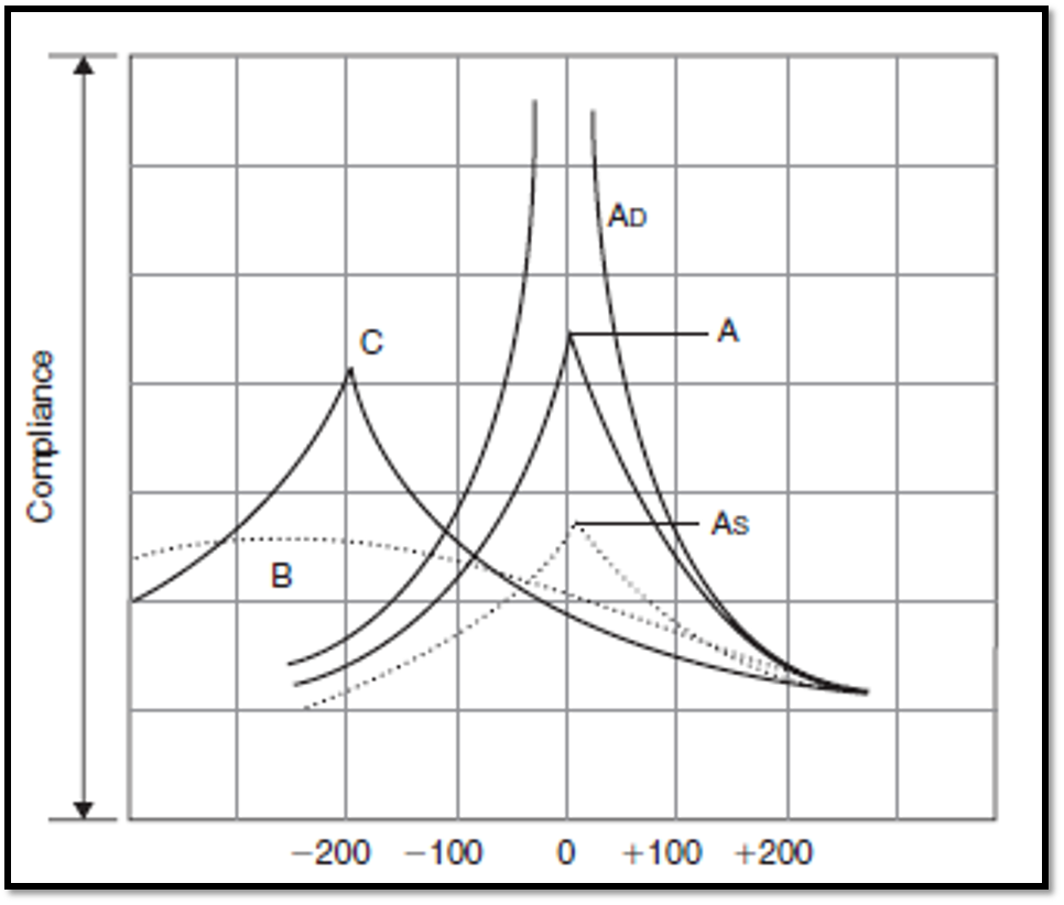 - Type C: Maximum compliance beyond -100 mmH2O indicating Eustachian tube dysfunction.