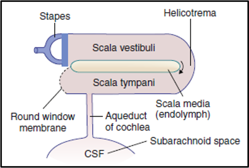 - while the space between membranous and bony labyrinths is filled with perilymph.