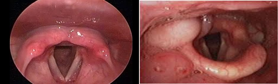 - Indirect Laryngoscopy: Pool of mucus in the pyriform fossa covering a mass or ulcer.