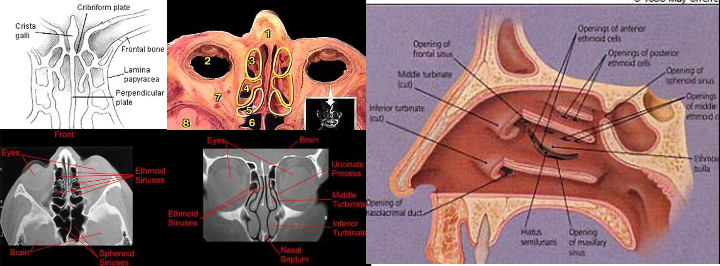 - Anterior ethmoids: drain into the middle meatus