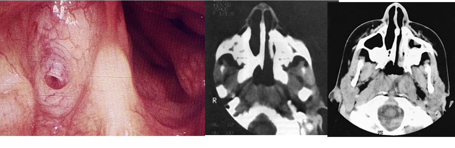 - Presents by unilateral nasal obstruction and unilateral mucoid nasal discharge