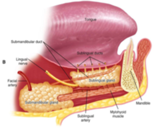 - Open into the mouth along the sublingual fold in the floor of the mouth.