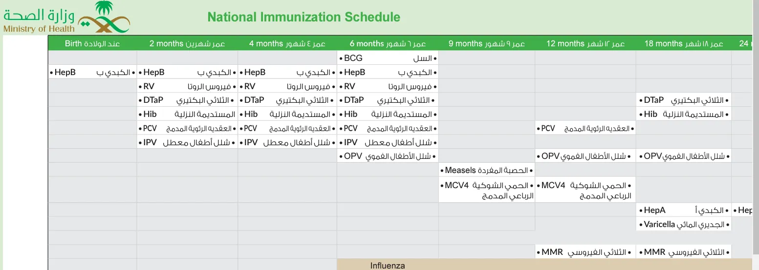 Family should be provided with a schedule so that they know how many injections to expect at each visit as well additional optional vaccines.