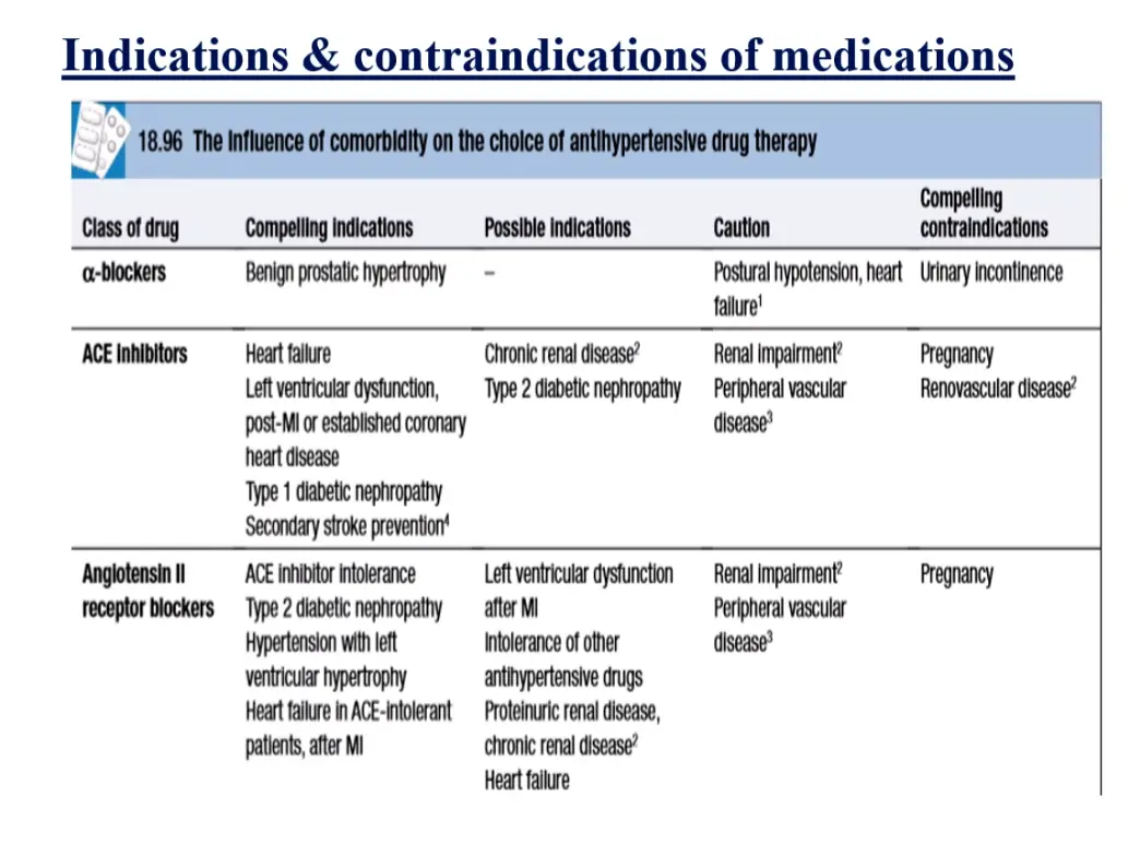 | Class of Drug | Compelling Indications | Possible Indications | Caution | Compelling Contraindications |