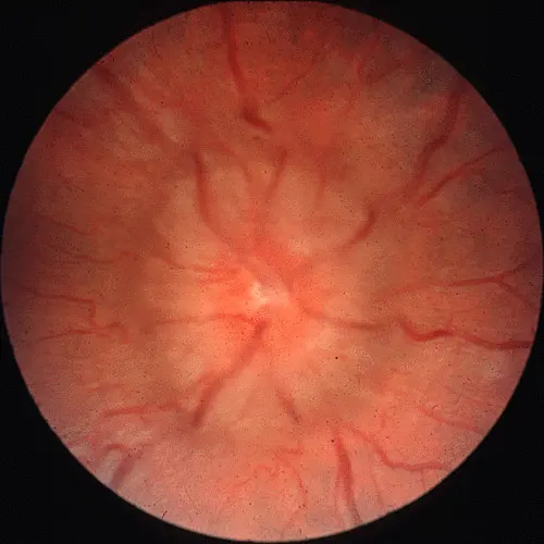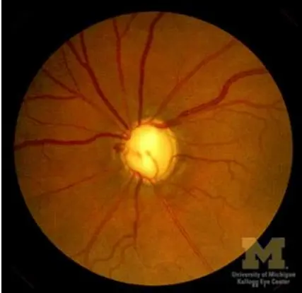 - Likely Papilledema (due to ↑ Intracranial Pressure).