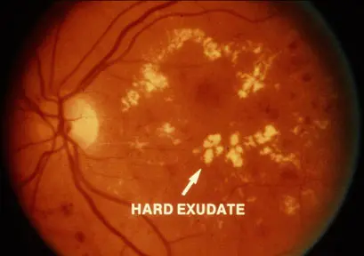 Non-proliferative diabetic retinopathy: If there are exudates and hemorrhages only, with no abnormal vessels, it is