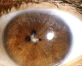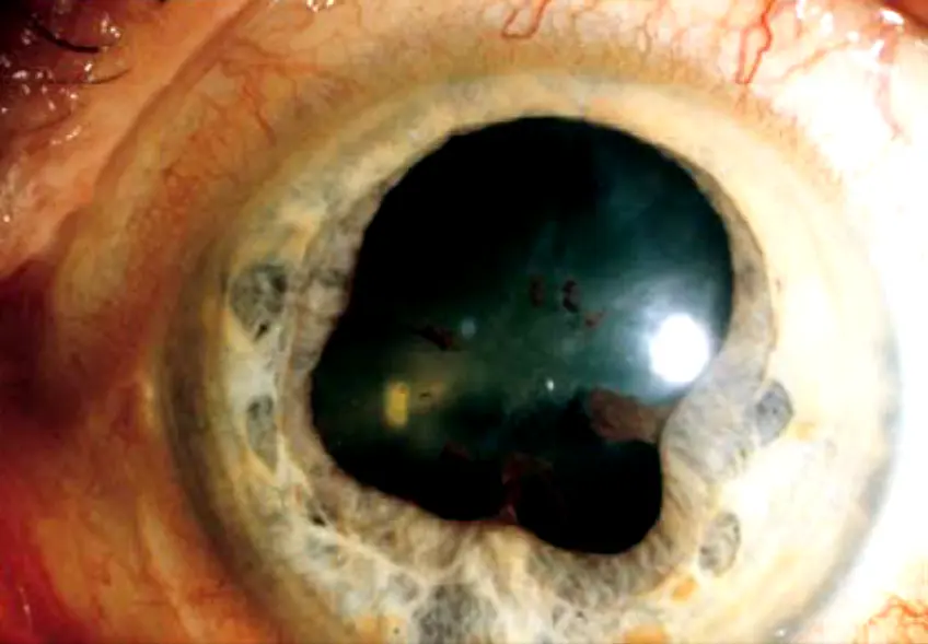 - A small part of the iris near the pupil but not reaching to ciliary border is removed.